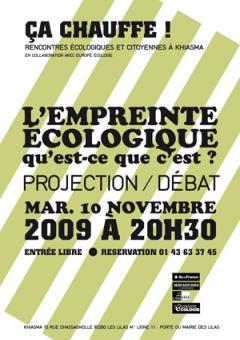 Au mois de Décembre 2009, se tiendra à Copenhague le Sommet de l’ONU sur le climat. Confrontés au péril climatique, les dirigeants du monde entier devront parvenir à surmonter leurs divergences d’intérêts de court terme pour se rassembler autour d’un projet politique mondial fondé sur un constat scientifique objectif. En Novembre l’Espace Khiasma aux Lilas vous invite à une soirée pour découvrir comment agir au niveau mondial, local et individuel afin de diminuer notre empreinte écologique. Un temps d'échanges et de débat ouvert à tous.